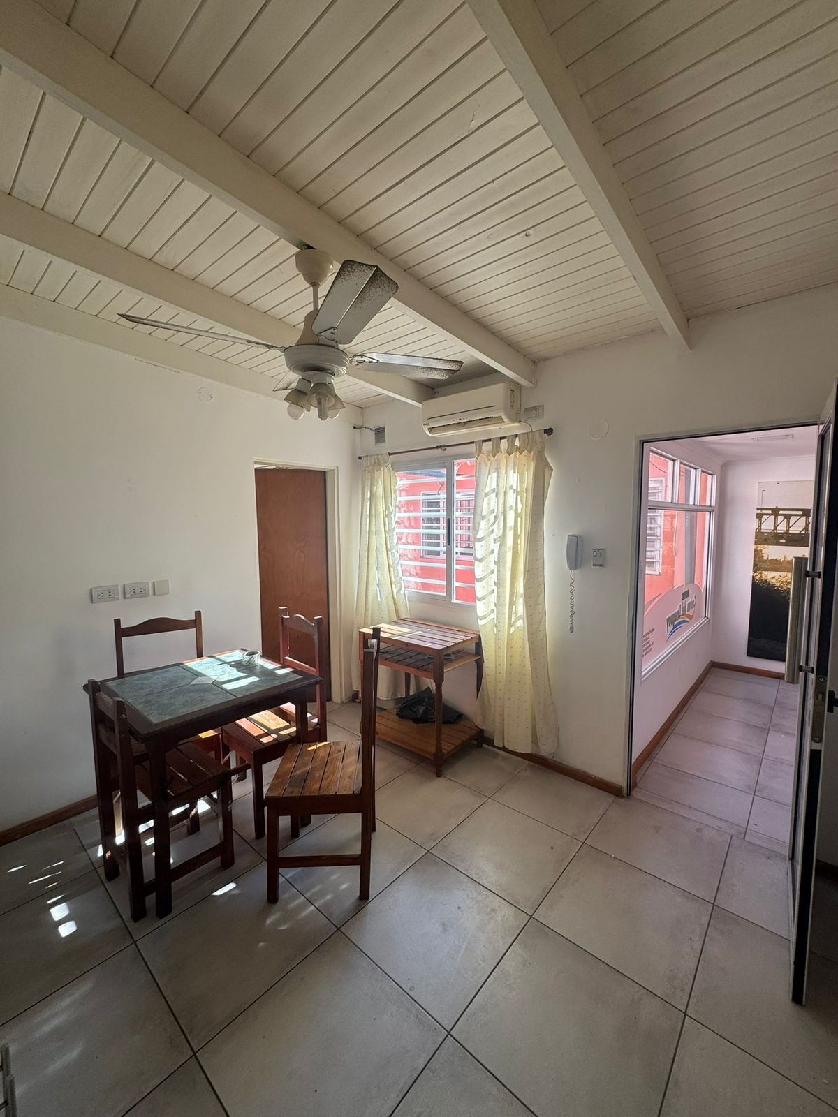 Departamento en alquiler, 2 ambientes, 2 baños, 1 dormitorio, cocina comedor, aire acondicionado, ventilador, calefactor, primer piso por escalera, cuenta con cochera para bicicletas o moto.