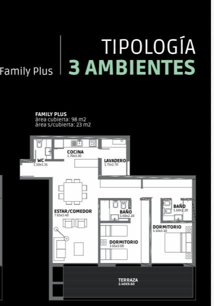 Departamento 2do piso, compuesto por cocina comedor, estar integrado, lavadero, 3 baños, 2 dormitorios con placard, vestidor, balcón con parrilla semicubierto, cochera doble + baulera.